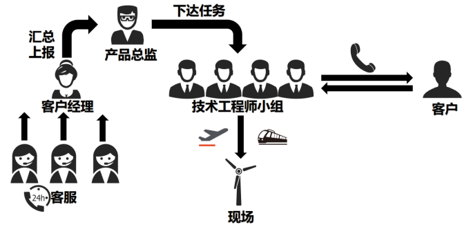 售后服務(wù)熱線24小時(shí)接聽,及時(shí)記錄客戶需求,并上報(bào)至技術(shù)總監(jiān),分配小組接洽客戶,解決問題。